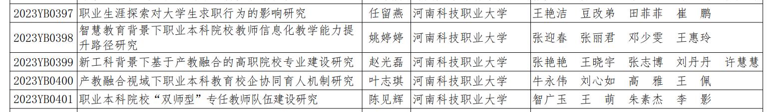 按照《河南省教育厅办公室关于开展河南省教育科学规划2023年度一般课题申报工作的通知》(教办教科〔2023〕74 号)要求,经学校上报、组织单位资格核查、专家评审、省教育科学规划领导小组批准,yl6809永利共有5位教师获批河南省教育科学规划2023年度一般课题立项(详情如图所示)