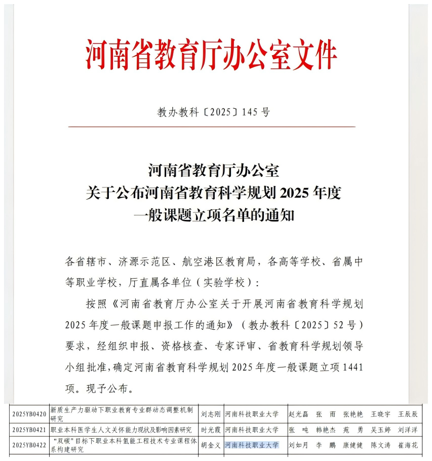 河南省教育厅办公室《关于公布河南省教育科学规划2025年度一般课题立项名单的通知》中,yl6809永利教师刘志刚、时光霞、胡金义的课题获得立项。