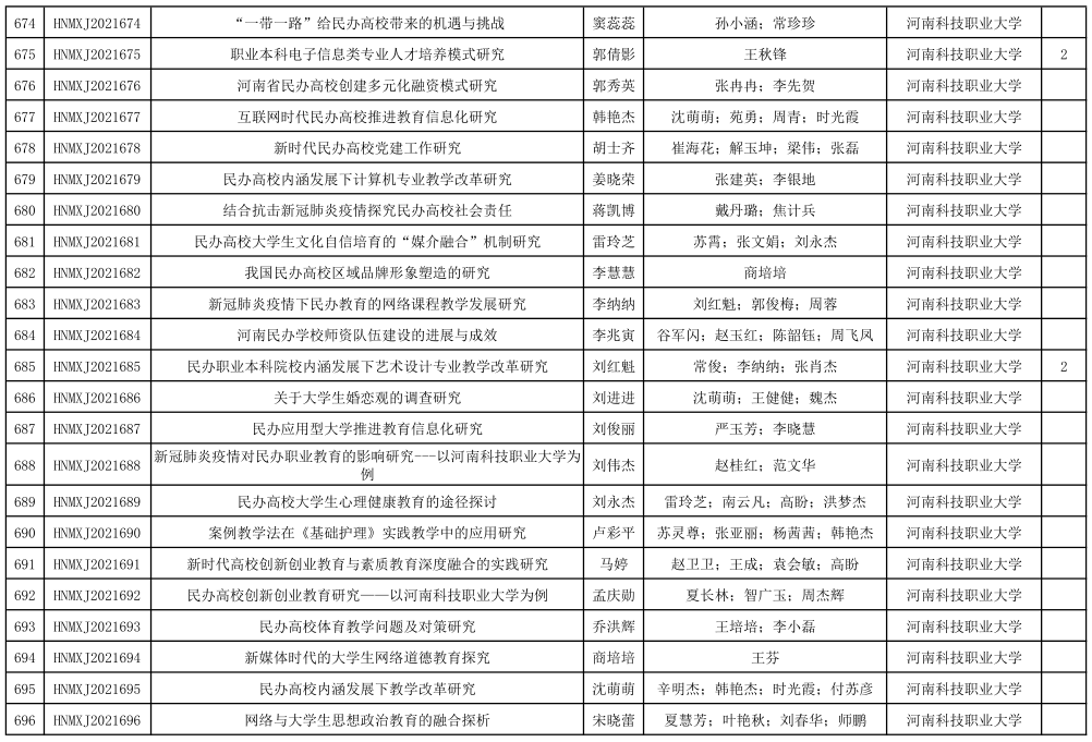 根据河南省民办教育协会《关于2020年度课题结项评审结果的通知》,yl6809永利50项河南省民办教育协会年度课题顺利结项。结项名单请详见附件:河南省民办教育协会2020年度课题结项评审一览表(2021年7月6日).pdf