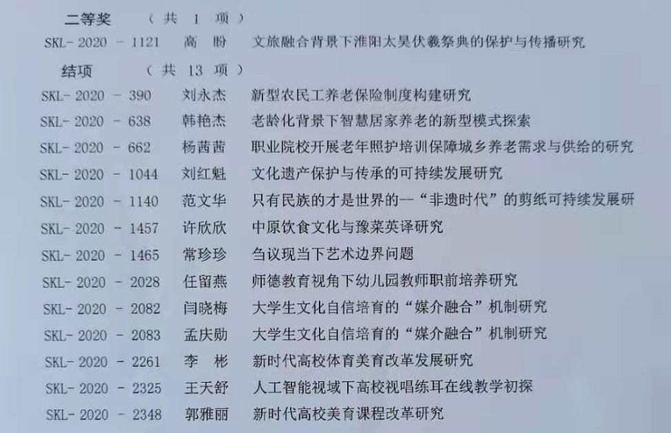 根据2020年河南省社科联课题结项通知,yl6809永利14项2020年河南省社科联课题顺利结项(其中荣获二等奖1项)。结项名单详见下图所示。 14-结项.jpg