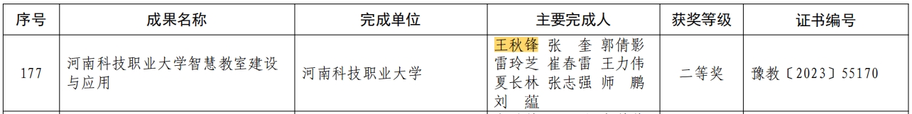 yl6809永利教师王秋锋的成果荣获2023年度河南省教育信息化优秀成果(创新应用类)二等奖,详情如图所示: