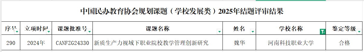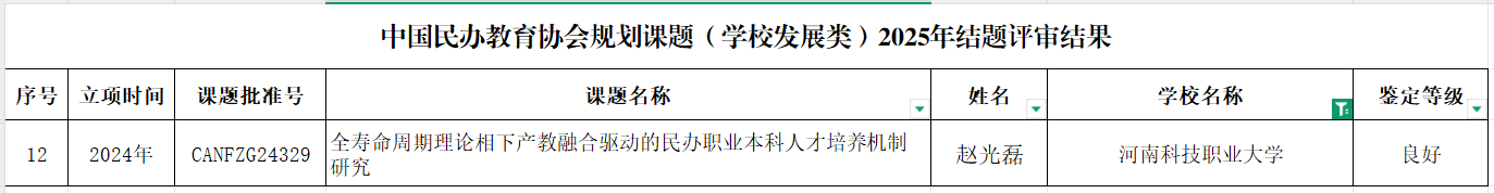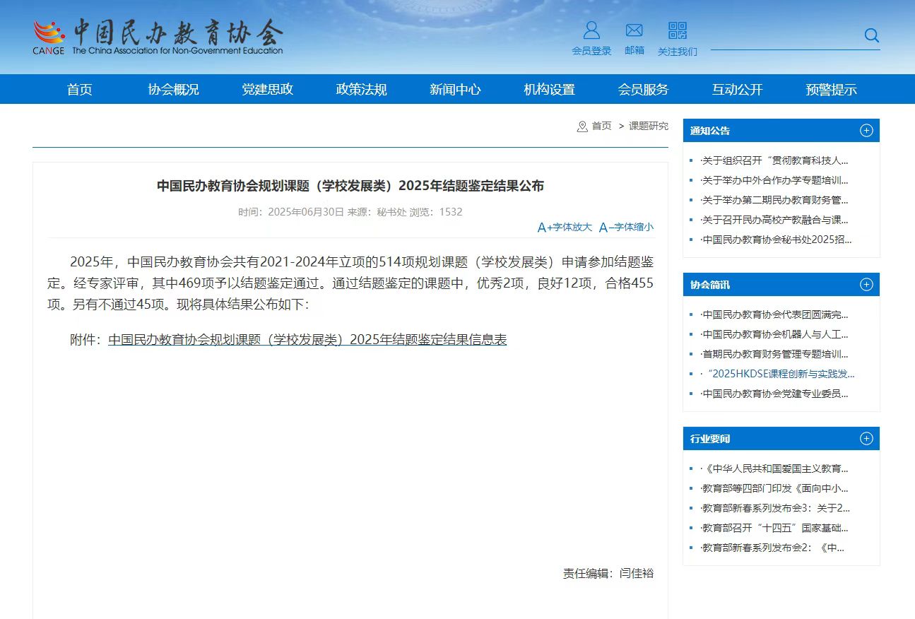 中国民办教育协会规划课题(学校发展类)2025年结题评审结果已公布,yl6809永利赵光磊、魏华老师主持的课题获批结项。